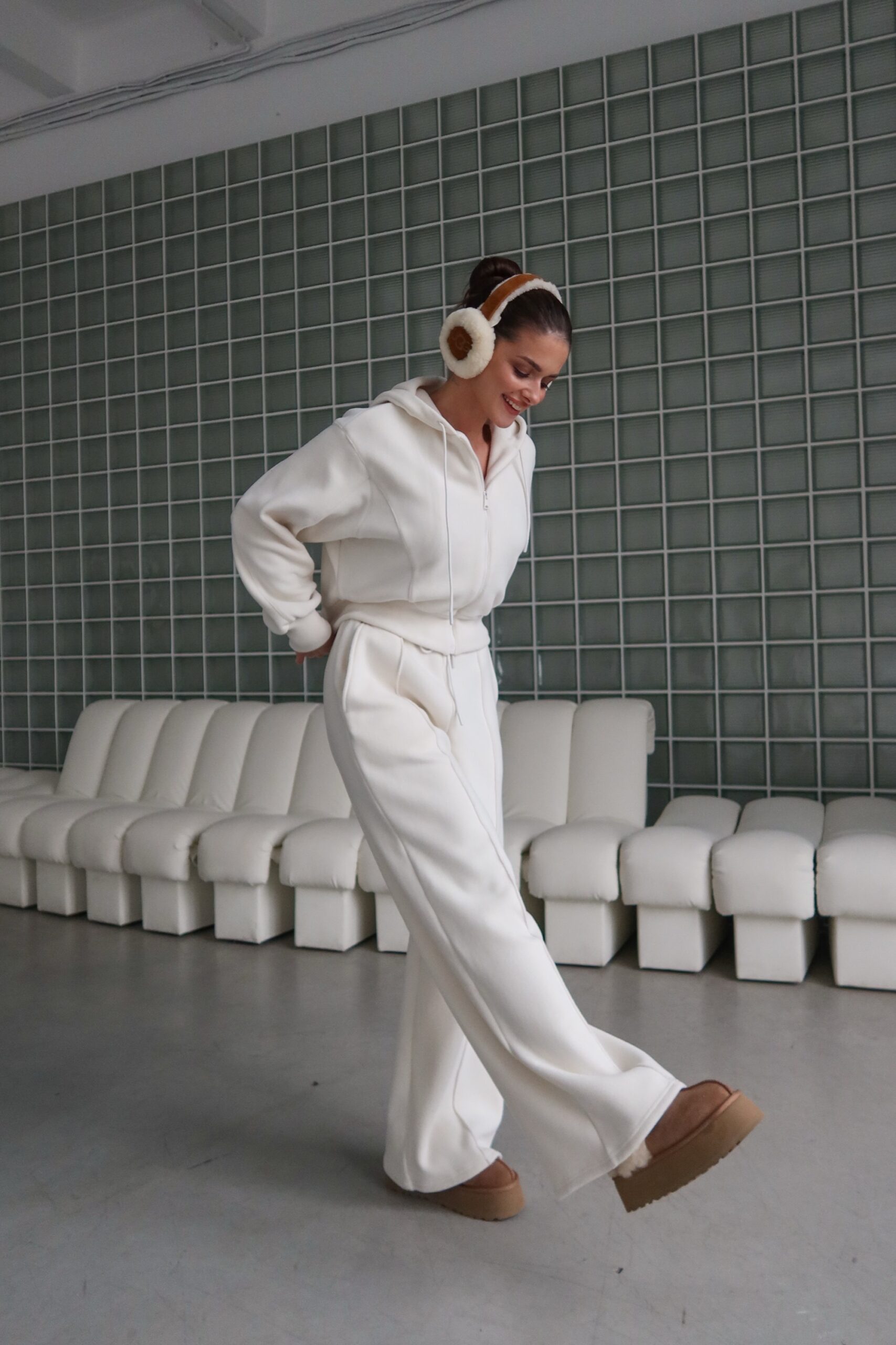 Balta spalva atrodo prabangiai ir švariai – lengvai derinama tiek su sportine avalyne, tiek su jaukiais UGG tipo batais ar net elegantiškesniais aksesuarais.