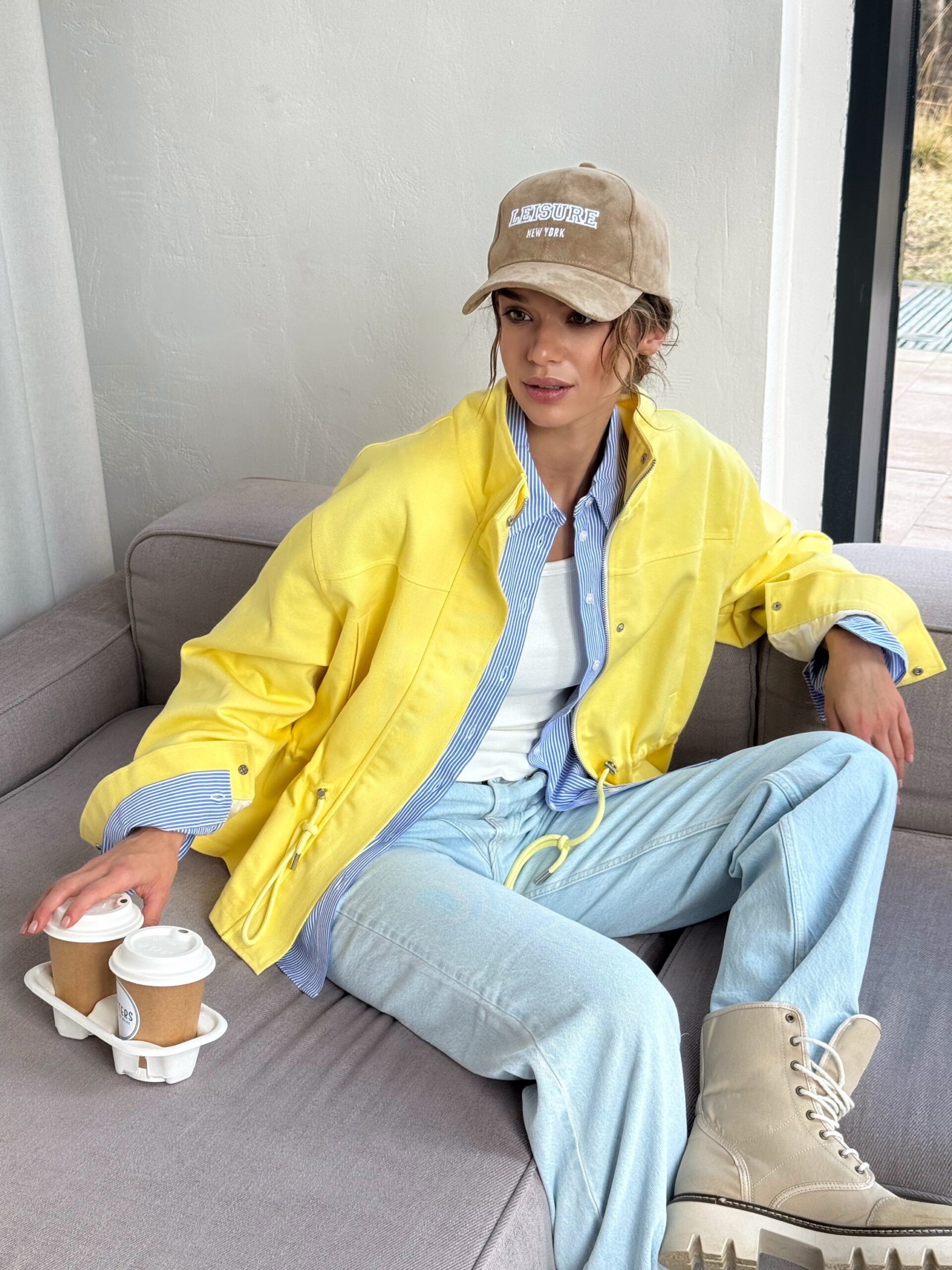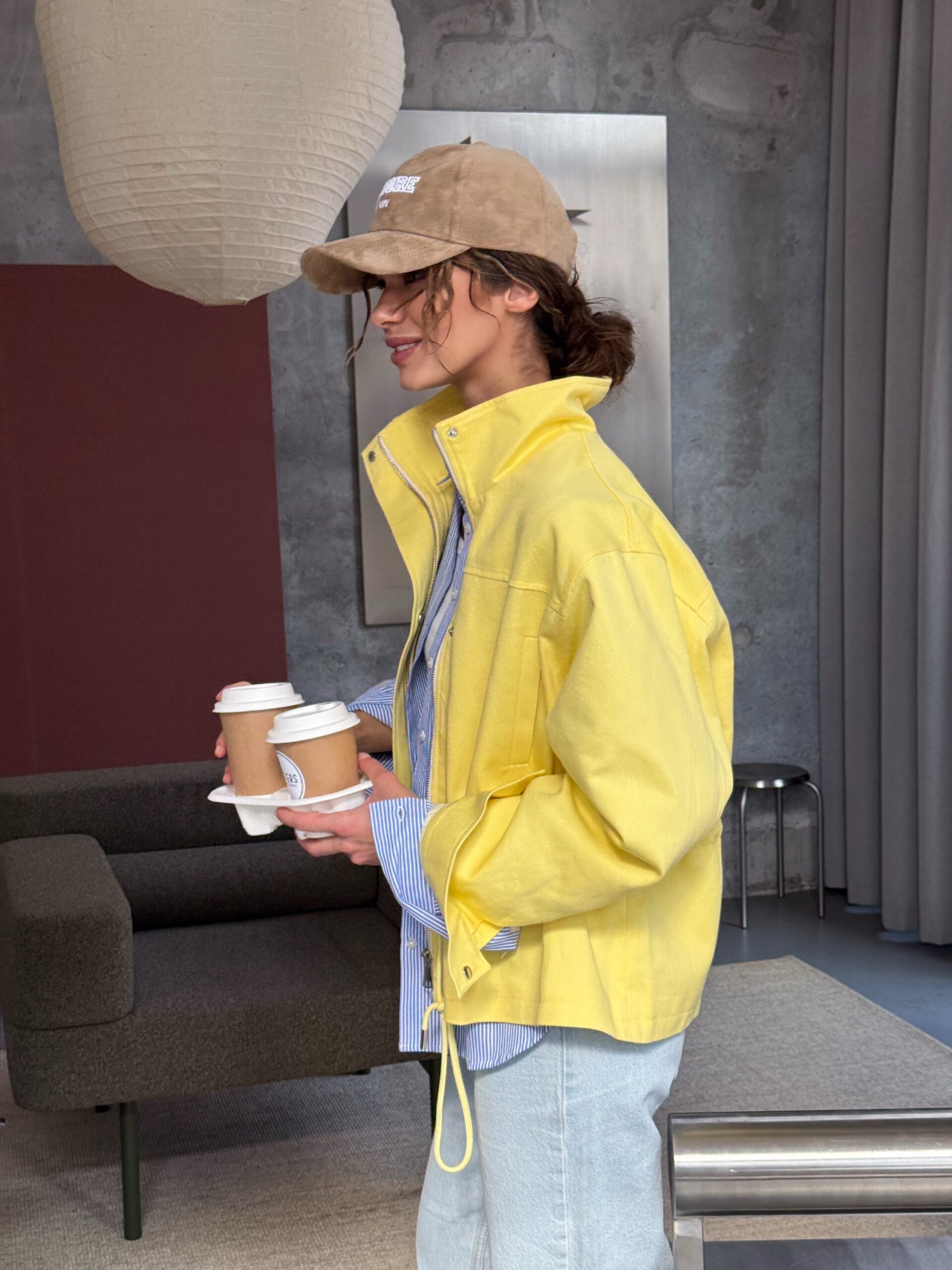 Ryškus ir stilingas geltonos spalvos bomberis – drąsus pasirinkimas moteriai, kuri nebijo išsiskirti. Saulėta geltona spalva suteikia įvaizdžiui energijos, pozityvumo ir iškart pagyvina net paprasčiausią derinį.