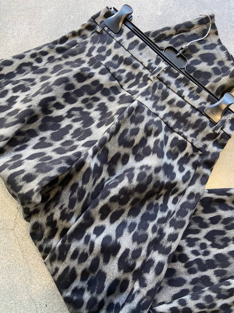Leopardinis raštas – išraiškingas, tačiau šiuo atveju perteiktas subtiliai. Tamsūs atspalviai leidžia kelnes derinti prie įvairių stilių: