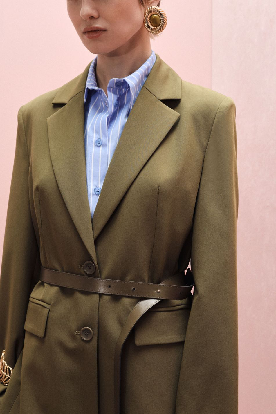 Moderni klasika su charakteriu – Imperial khaki švarkas su dirželiu yra išskirtinis pasirinkimas moteriai, vertinančiai eleganciją ir subtilų išskirtinumą. Šis modelis iš karto traukia akį savo rafinuotu siluetu bei itin madinga khaki spalva, kuri lengvai derinama tiek kasdieniuose, tiek oficialesniuose deriniuose.