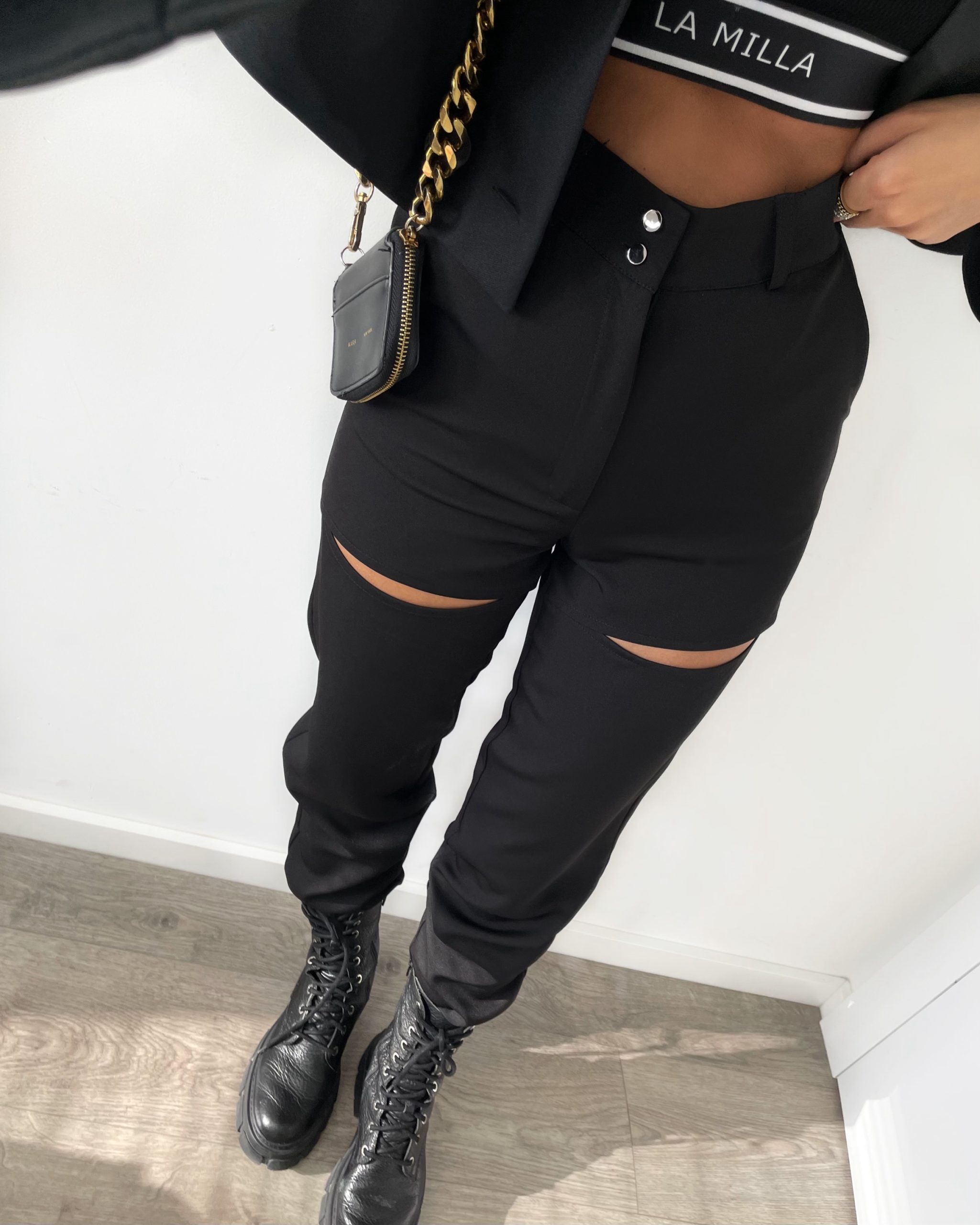 Kelnių išskirtinumas – stilingos iškirptės ties kelių zona, suteikiančios įvaizdžiui jaunatviško veržlumo ir modernumo. Aukštas liemuo ne tik gražiai suformuoja siluetą, bet ir leidžia jaustis komfortiškai visą dieną. Madinga, bet neperkrauta – tai modelis, kurį drąsiai galėsite derinti tiek su oversized švarkais, tiek su trumpais megztiniais ar sportine apranga.