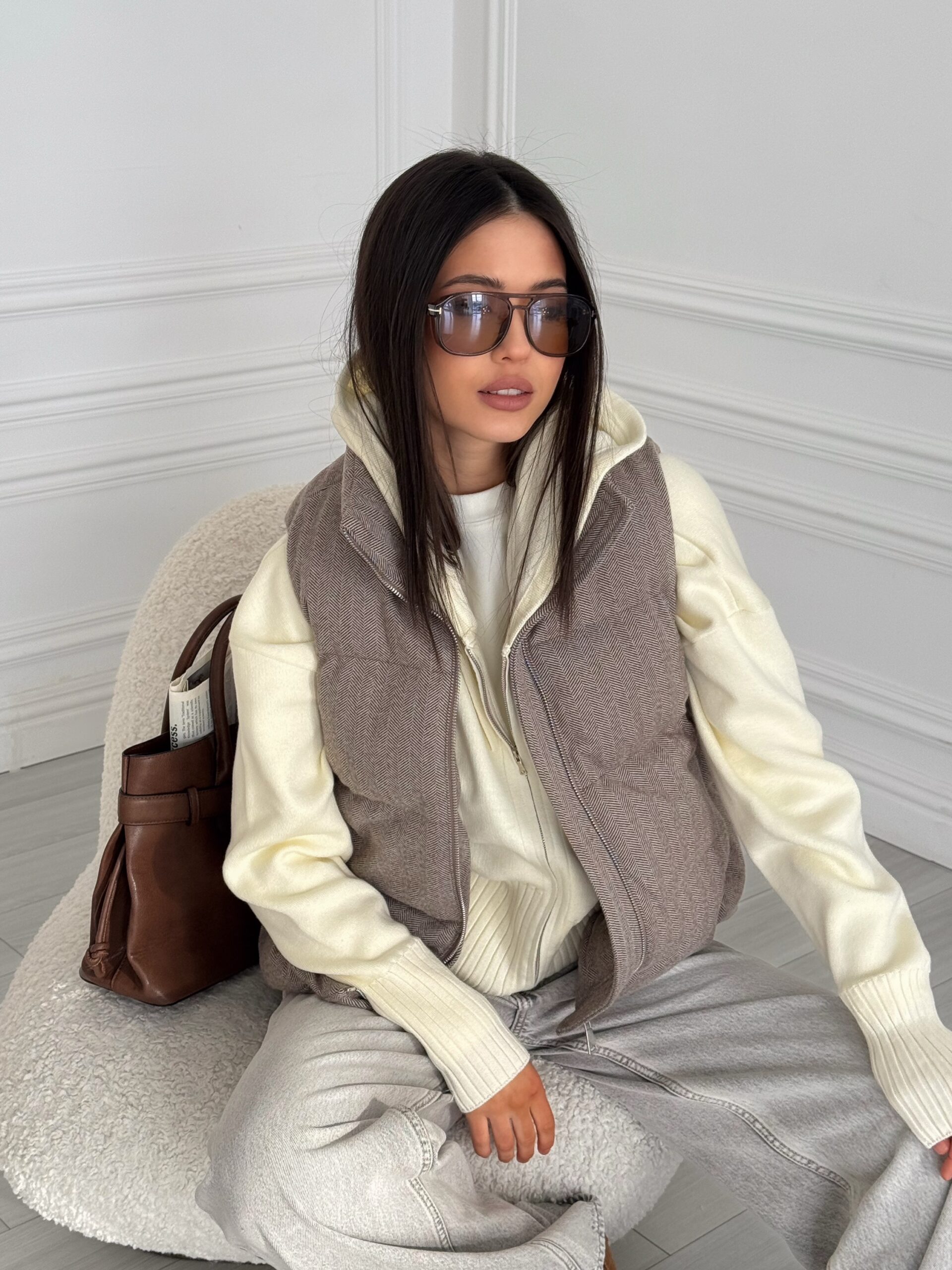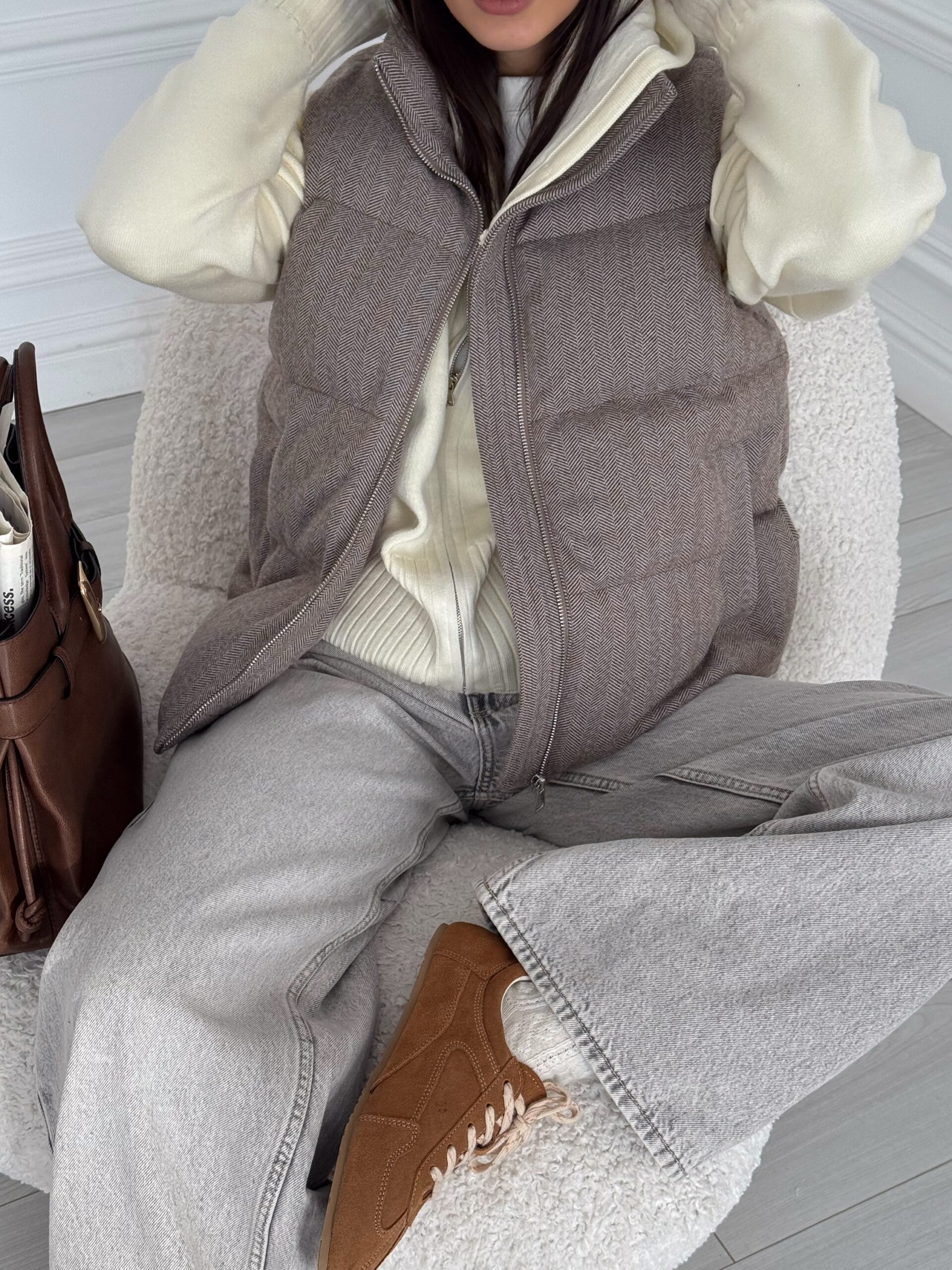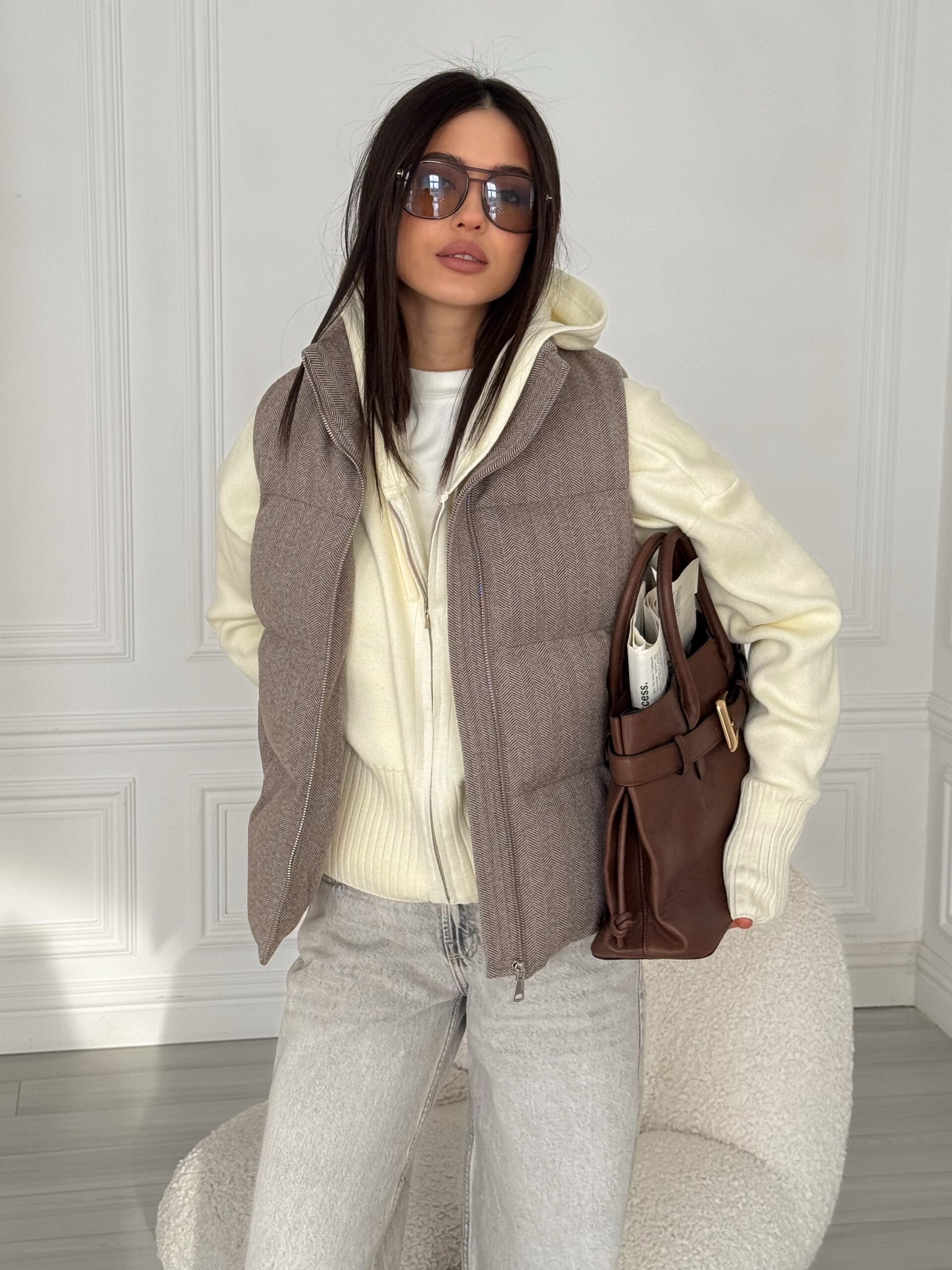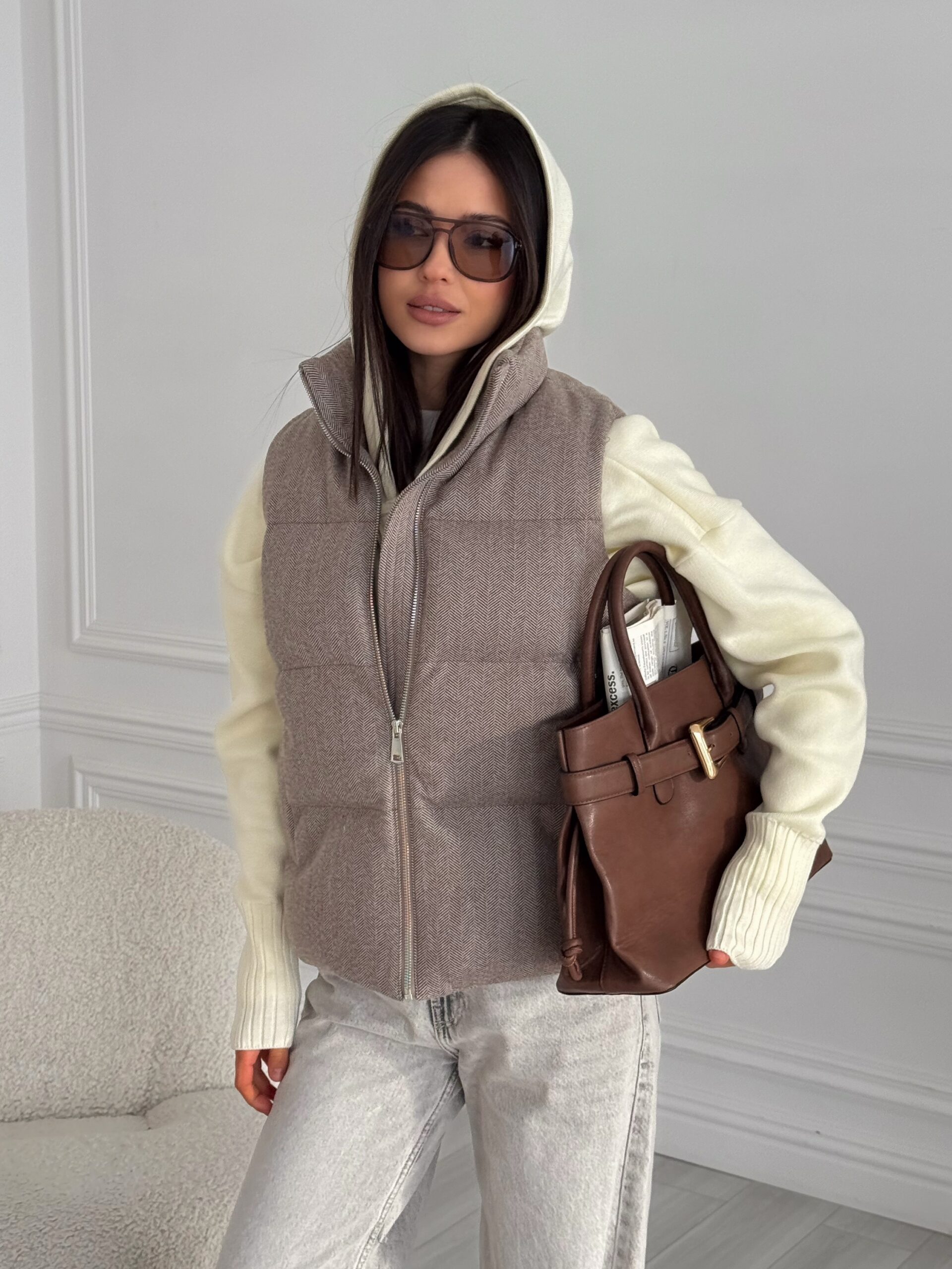 Stilinga ir universali liemenė Vilma Chocolate – puikus pasirinkimas pereinamajam sezonui, kai norisi šilumos, tačiau išlaikyti lengvą ir elegantišką įvaizdį.