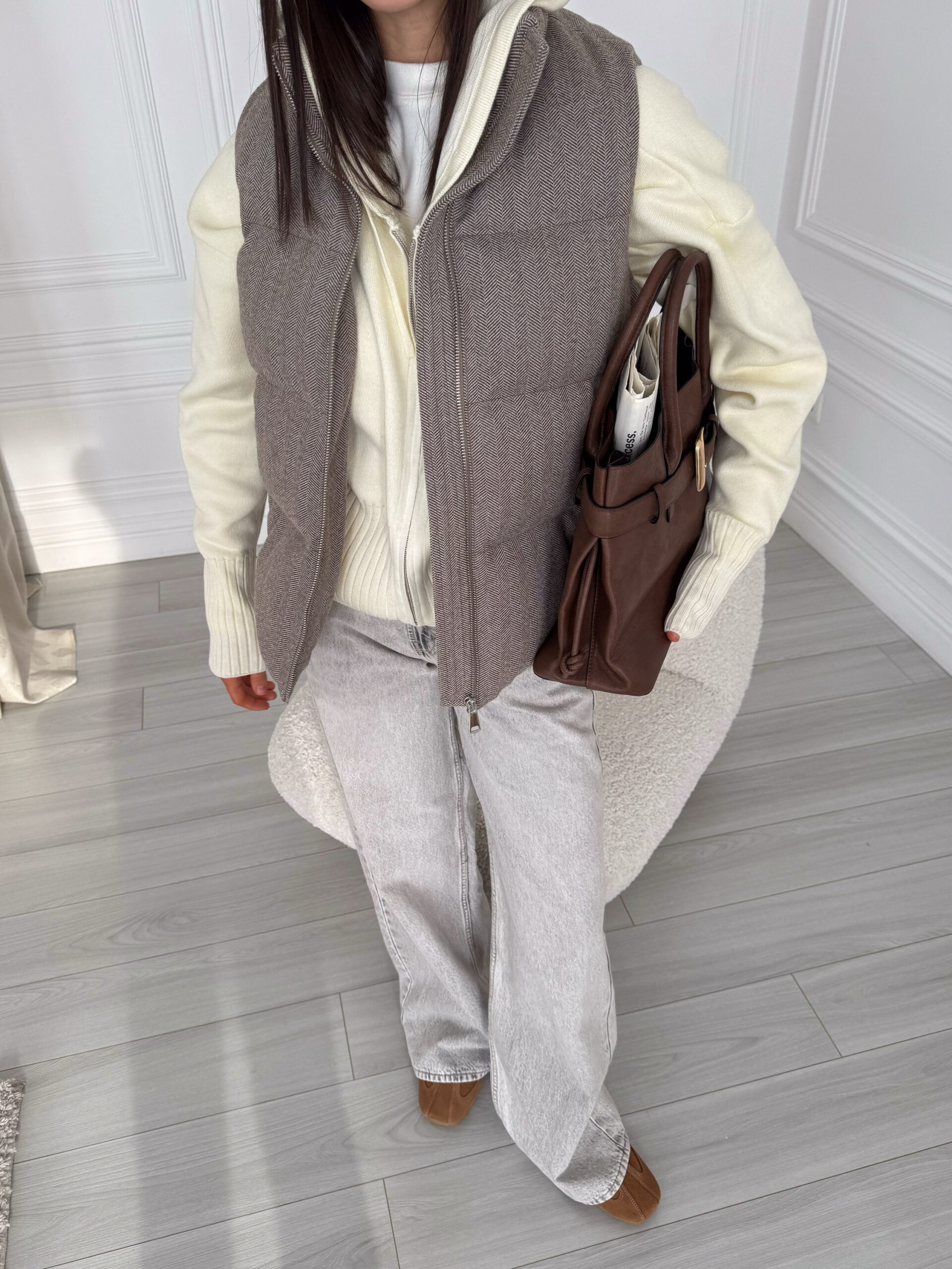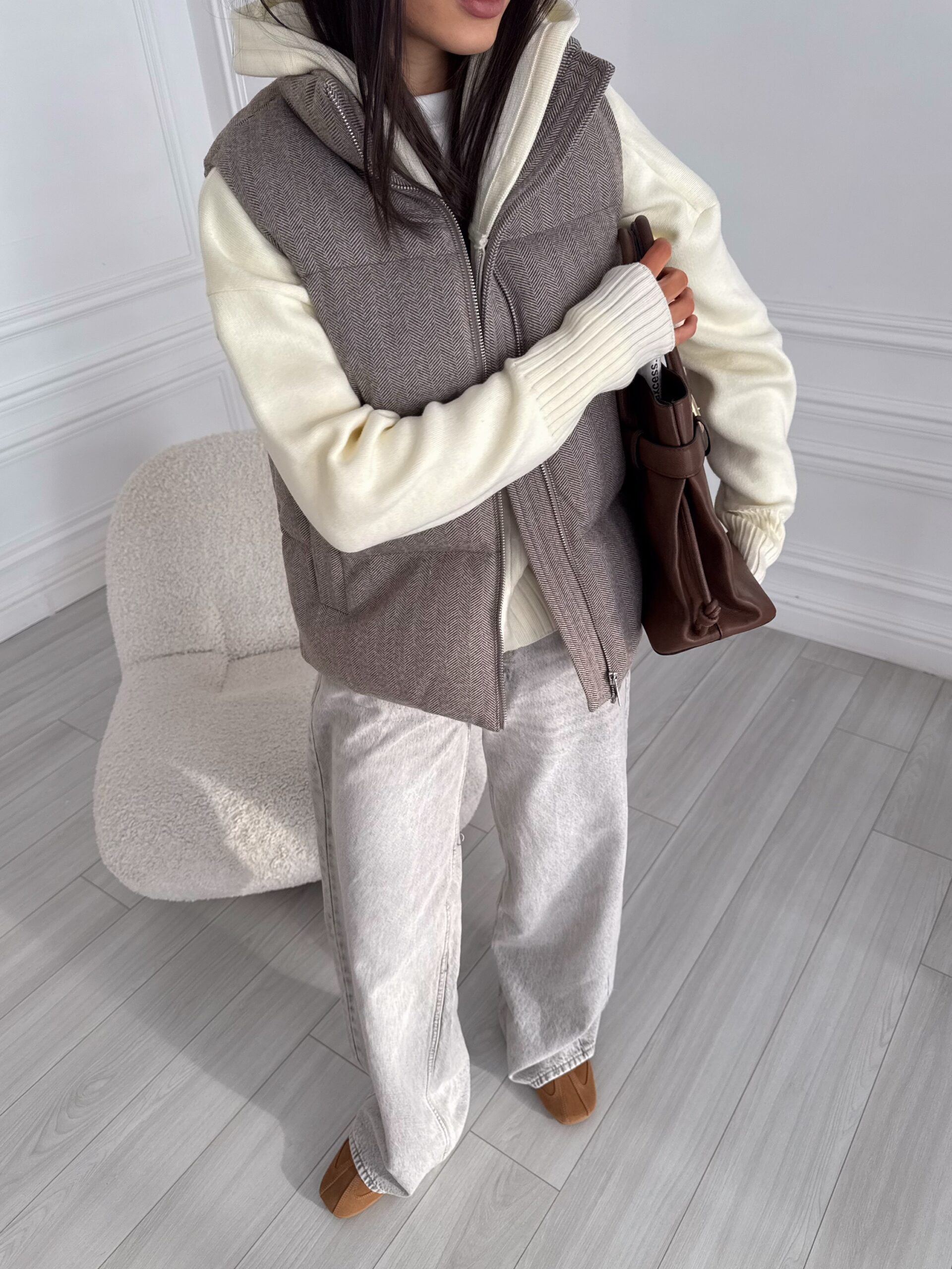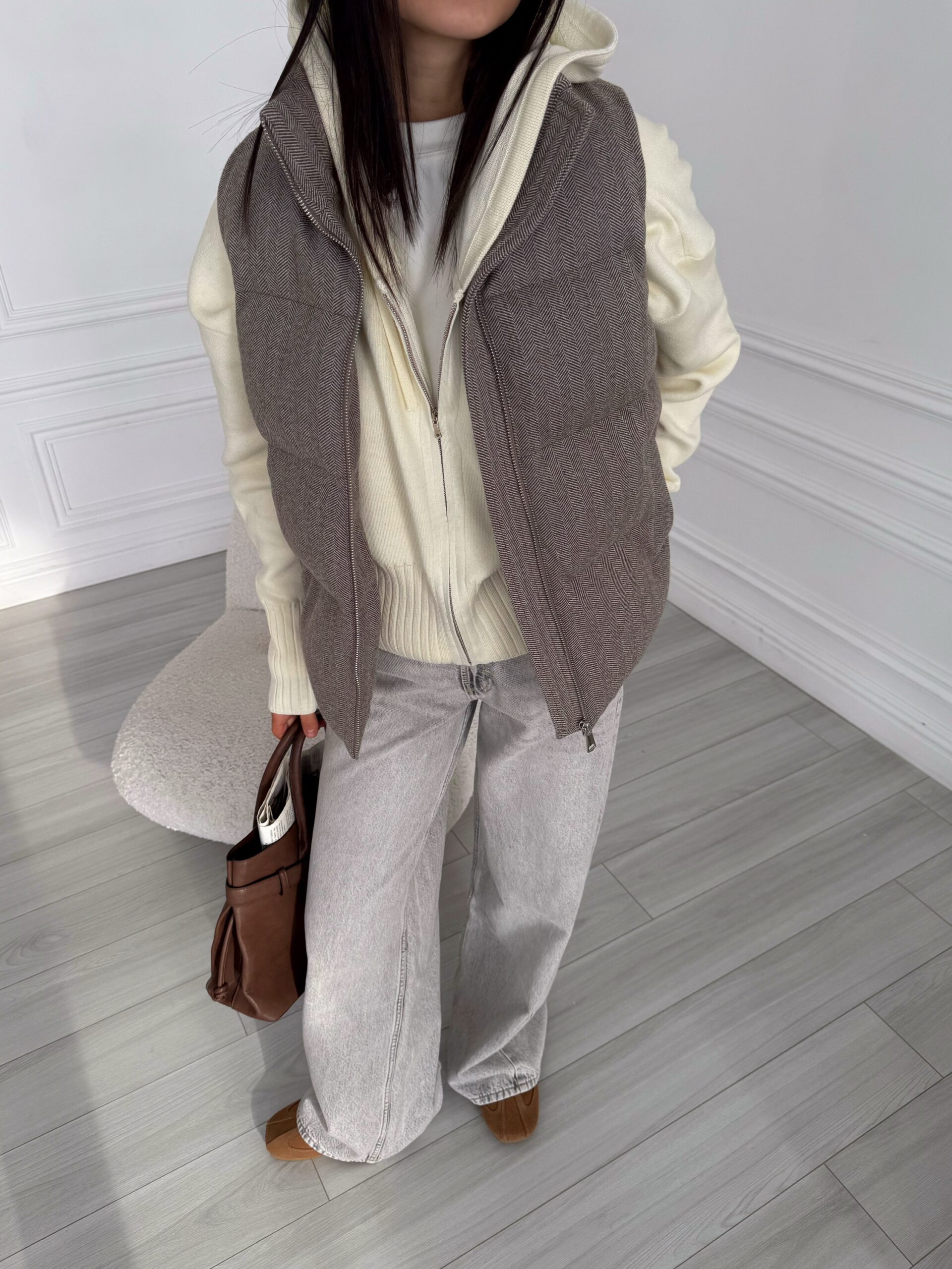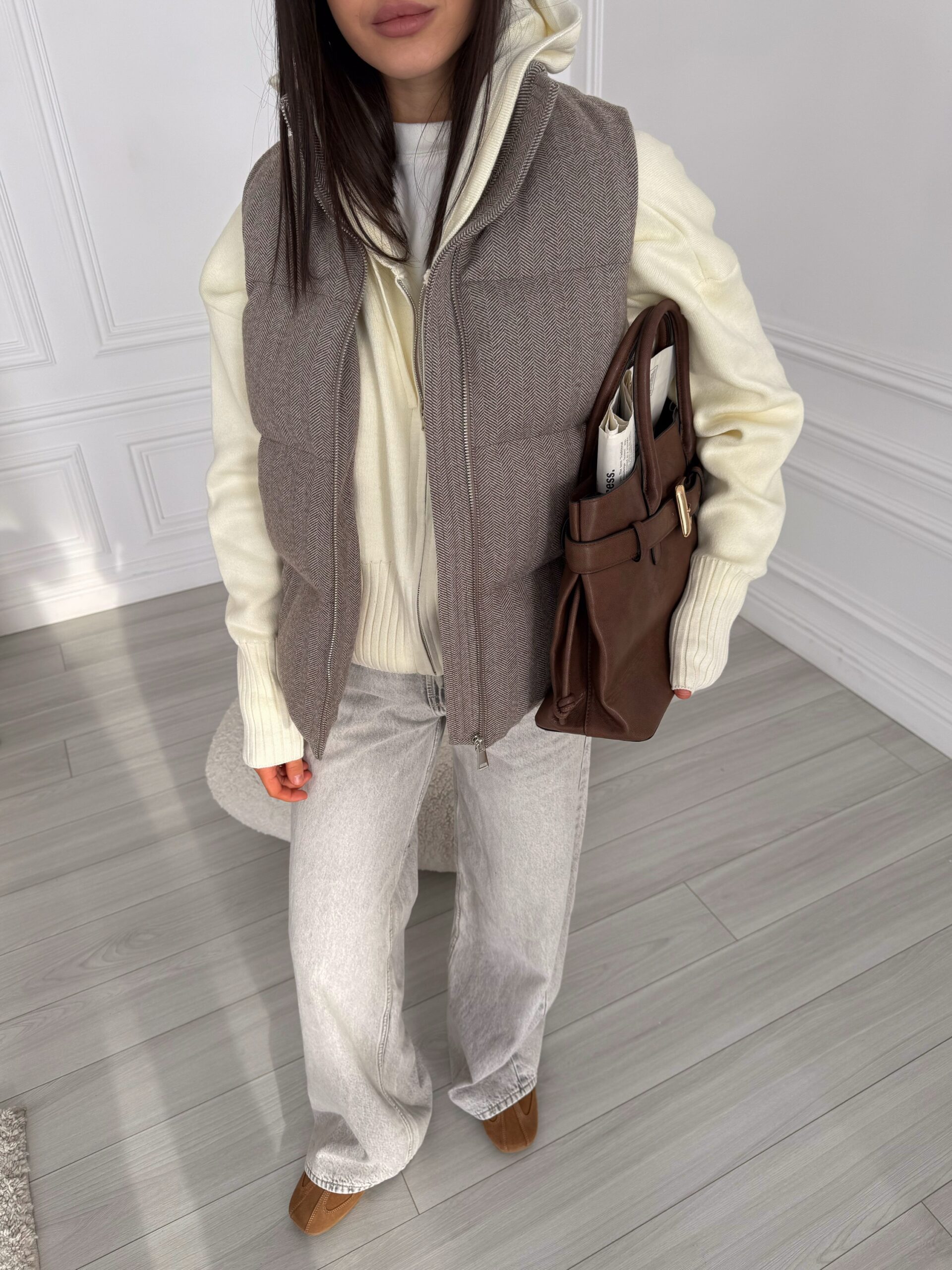 Stilinga ir universali liemenė Vilma Chocolate – puikus pasirinkimas pereinamajam sezonui, kai norisi šilumos, tačiau išlaikyti lengvą ir elegantišką įvaizdį.