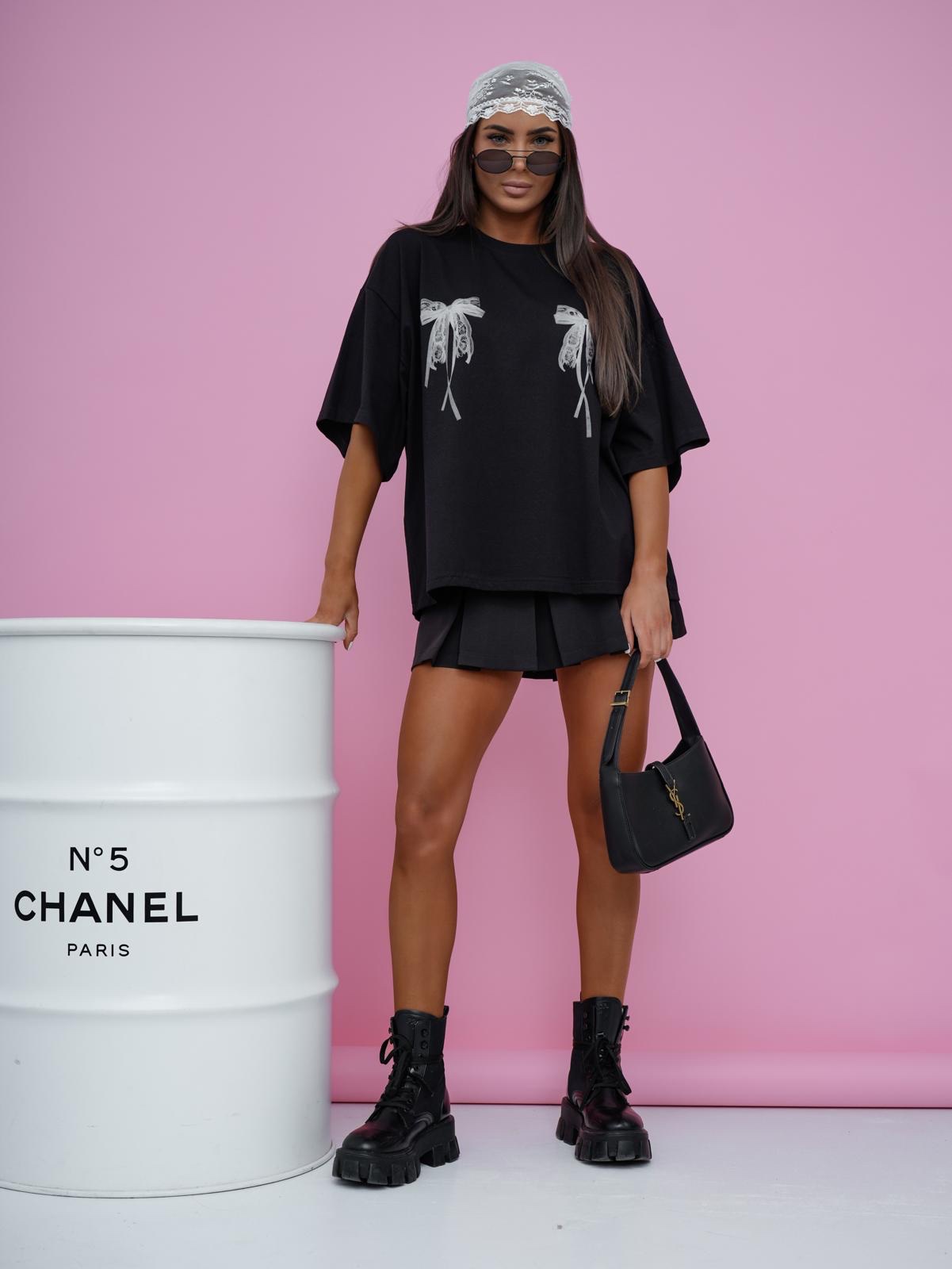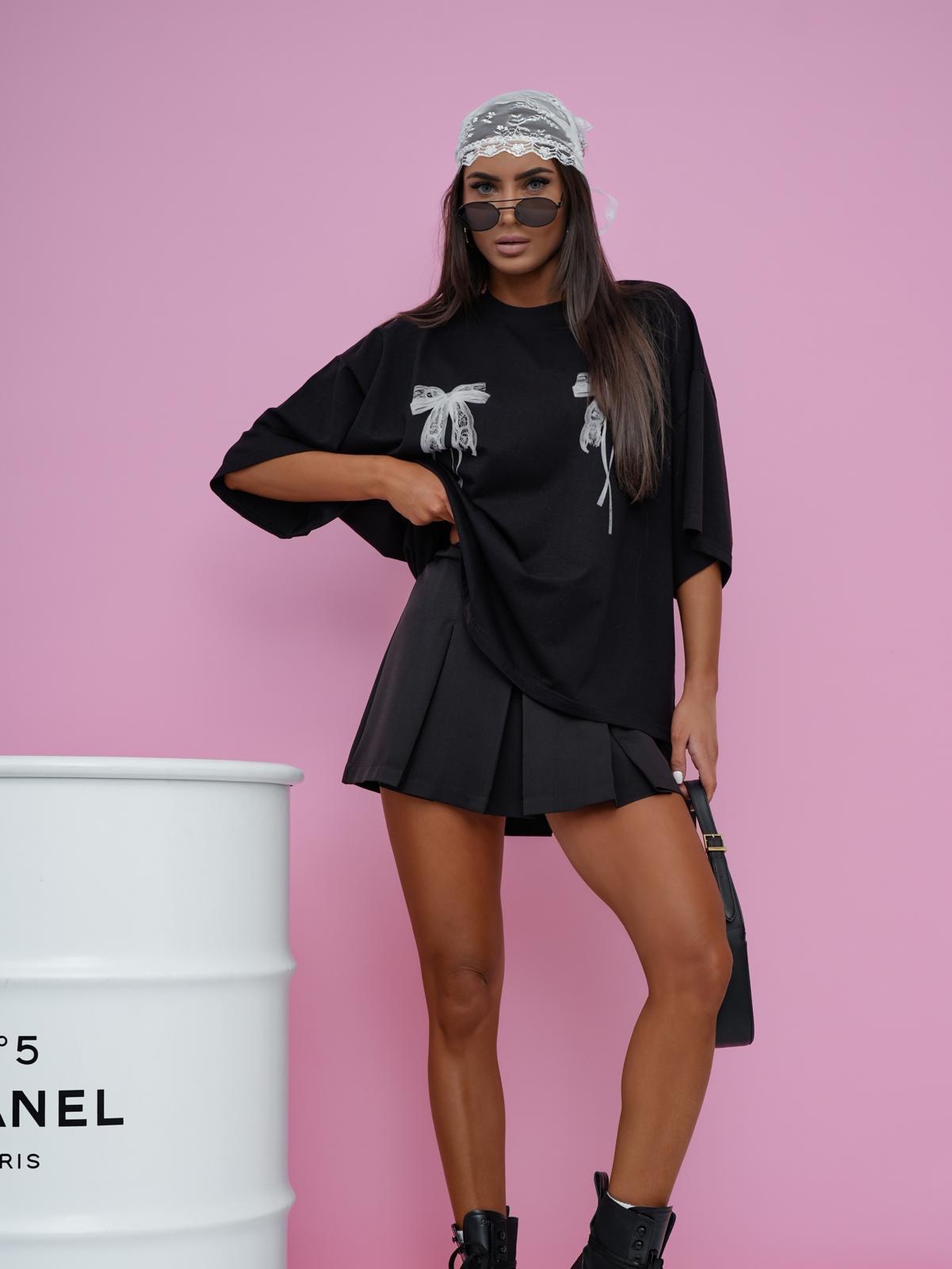 Stilingi ir išskirtinio dizaino „Over Black“ marškinėliai – modernus pasirinkimas moterims, vertinančioms komfortą ir madingas detales. Oversize tipo siluetas suteikia laisvės pojūtį, o subtilūs balti kaspinų motyvai priekyje sukuria elegantišką ir tuo pačiu žaismingą akcentą.