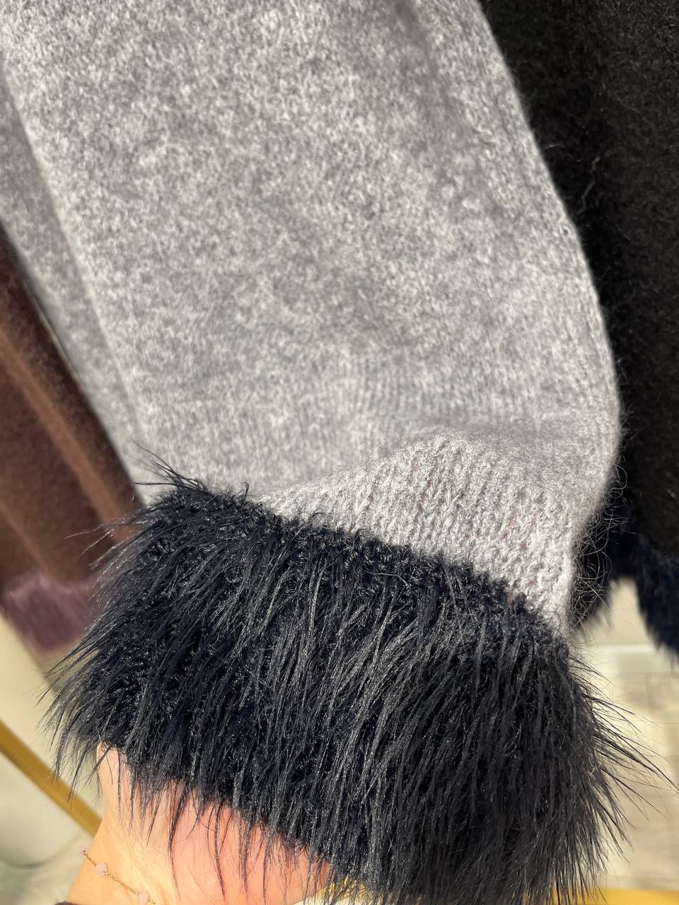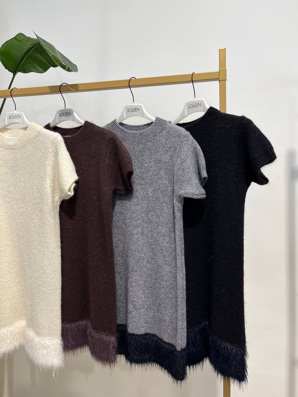Trumpesnės rankovės suteikia modernumo, o kailiuko efektą turintis apačios kraštelis pabrėžia išskirtinį dizainą. Tai suknelė, kuri derina minimalistinį itališką stilių ir jaukų mezginį, todėl ją galima lengvai transformuoti iš kasdienio į šventinį įvaizdį – tereikia pakeisti avalynę ir aksesuarus.