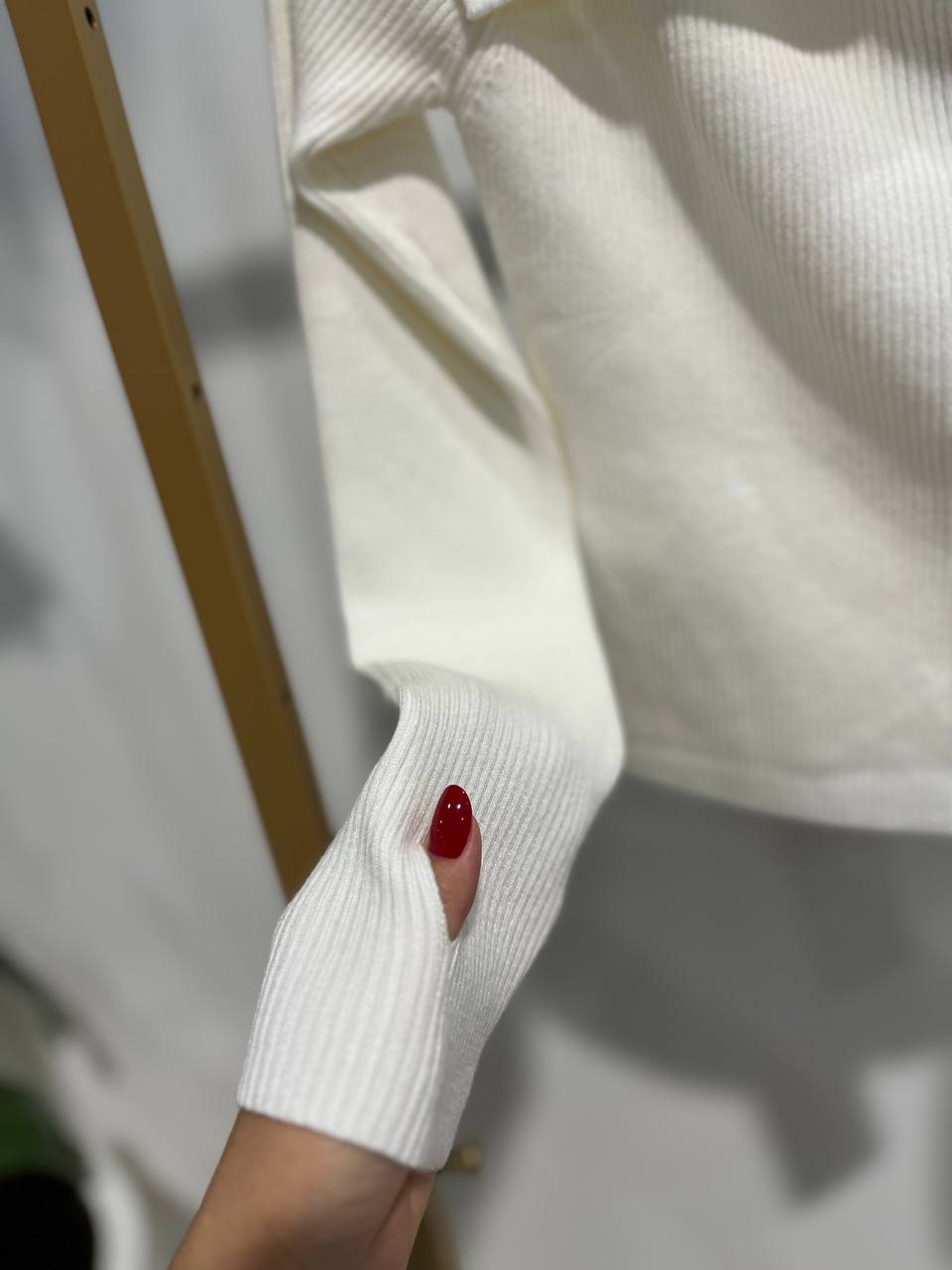 Palaidinės yra ilgomis rankovėmis, o jų rankogaliuose yra speciali detalė – skylutė nykščiui. Tai ne tik praktiškas, bet ir madingas sprendimas, suteikiantis sportiškos, jaunatviškos nuotaikos. Be to, tokia detalė leidžia rankovėms gražiai priglusti ir neleidžia joms susiglausti aukštyn.