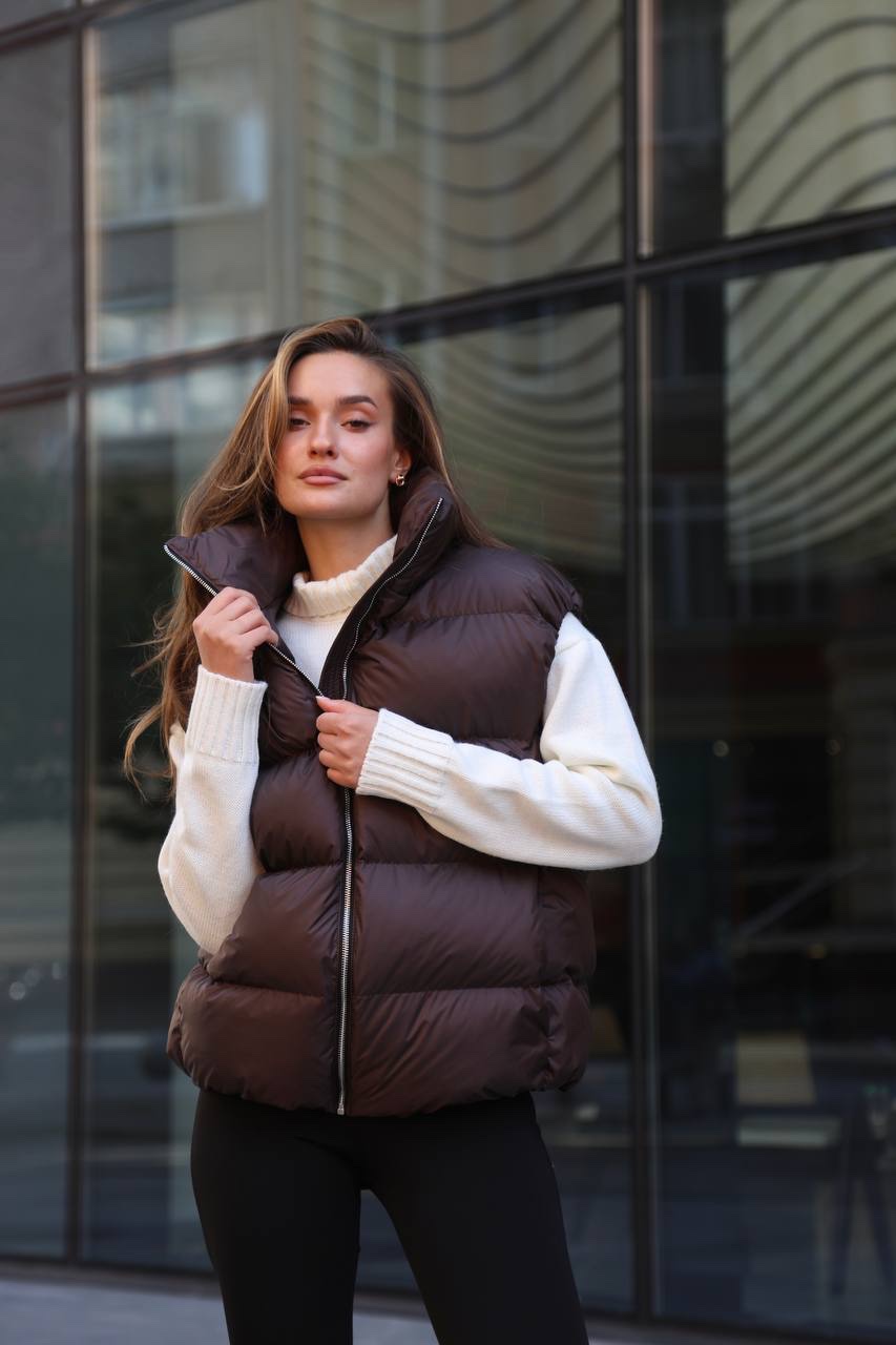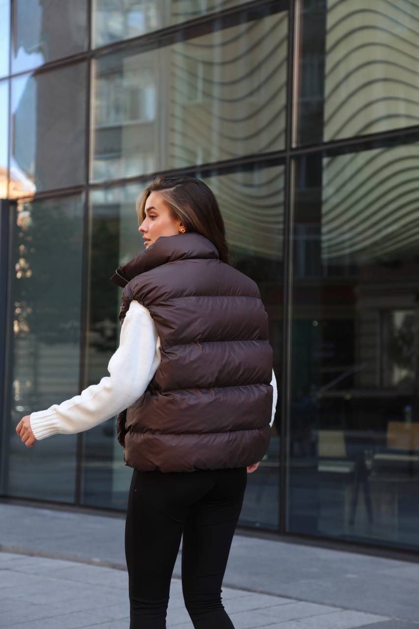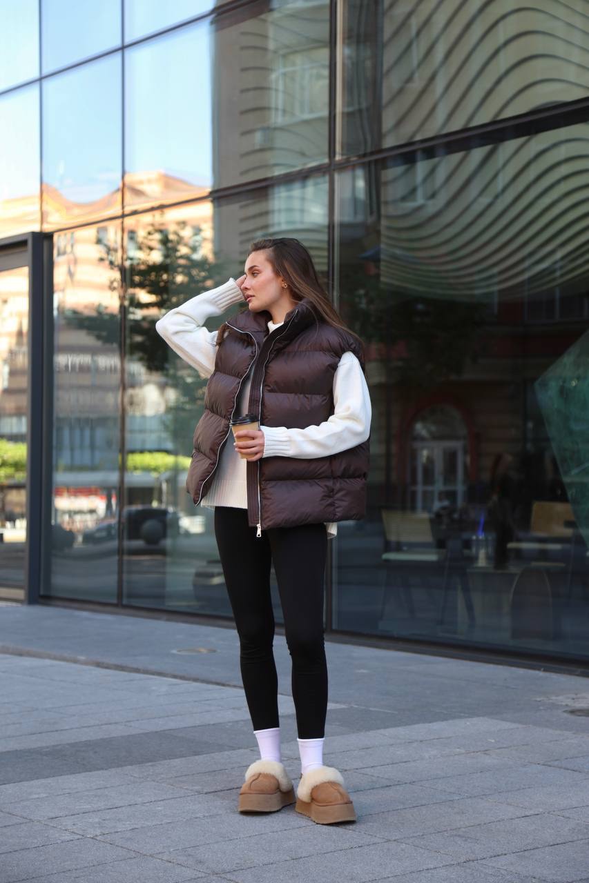 Rudos spalvos bio pūko užpildo liemenė – jaukumas ir elegancija kiekvienai dienai
