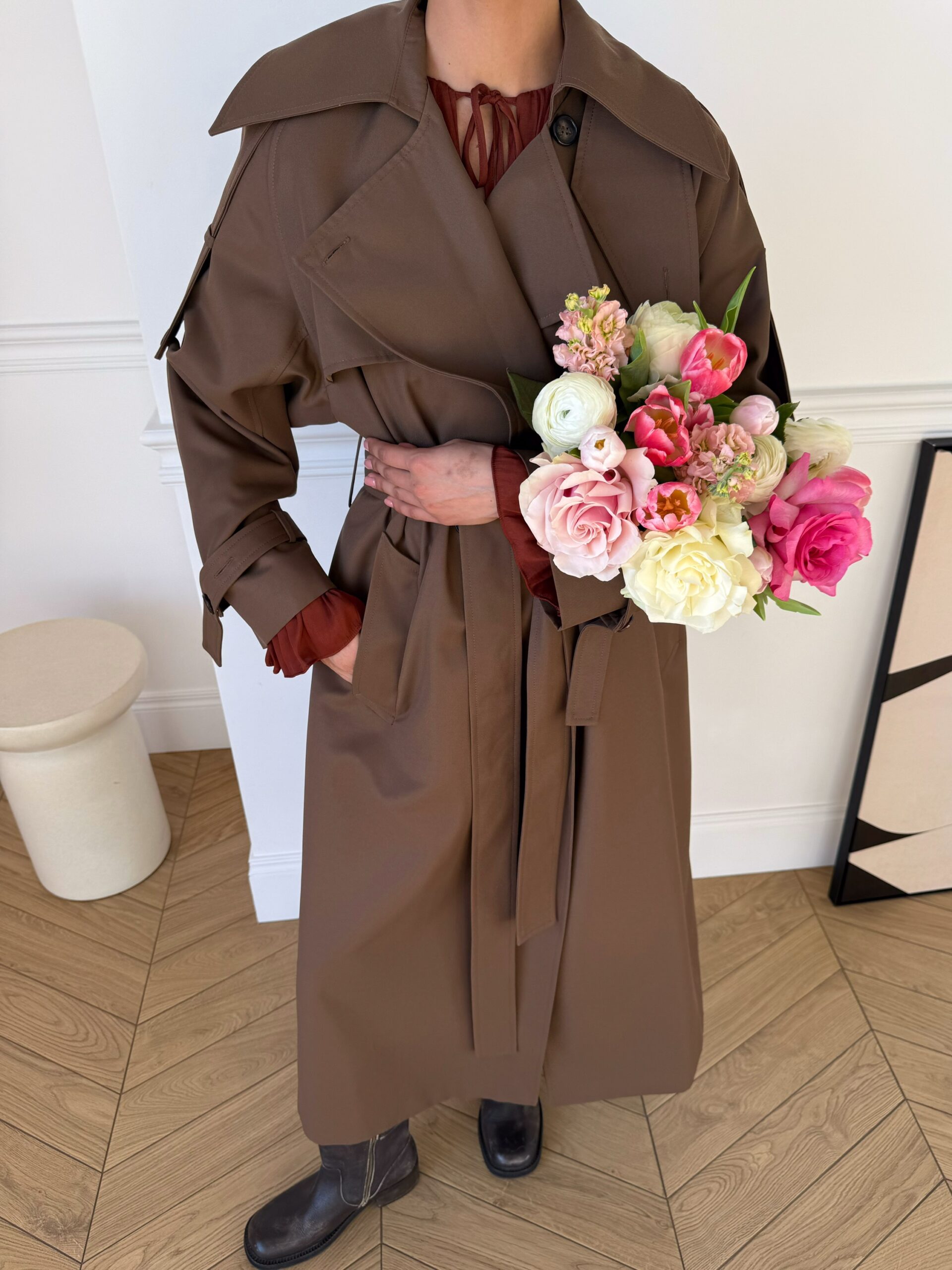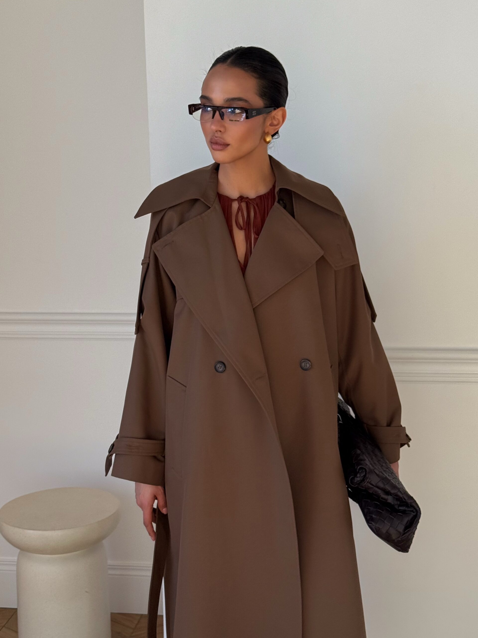Elegantiškas šokoladinės spalvos paltas – tai rafinuotas pasirinkimas moteriai, vertinančiai kokybę, minimalizmą ir išskirtinį stilių. Gili, sodri spalva suteikia įvaizdžiui prabangos pojūtį ir lengvai derinama tiek prie šviesių, tiek prie tamsių garderobo detalių.
