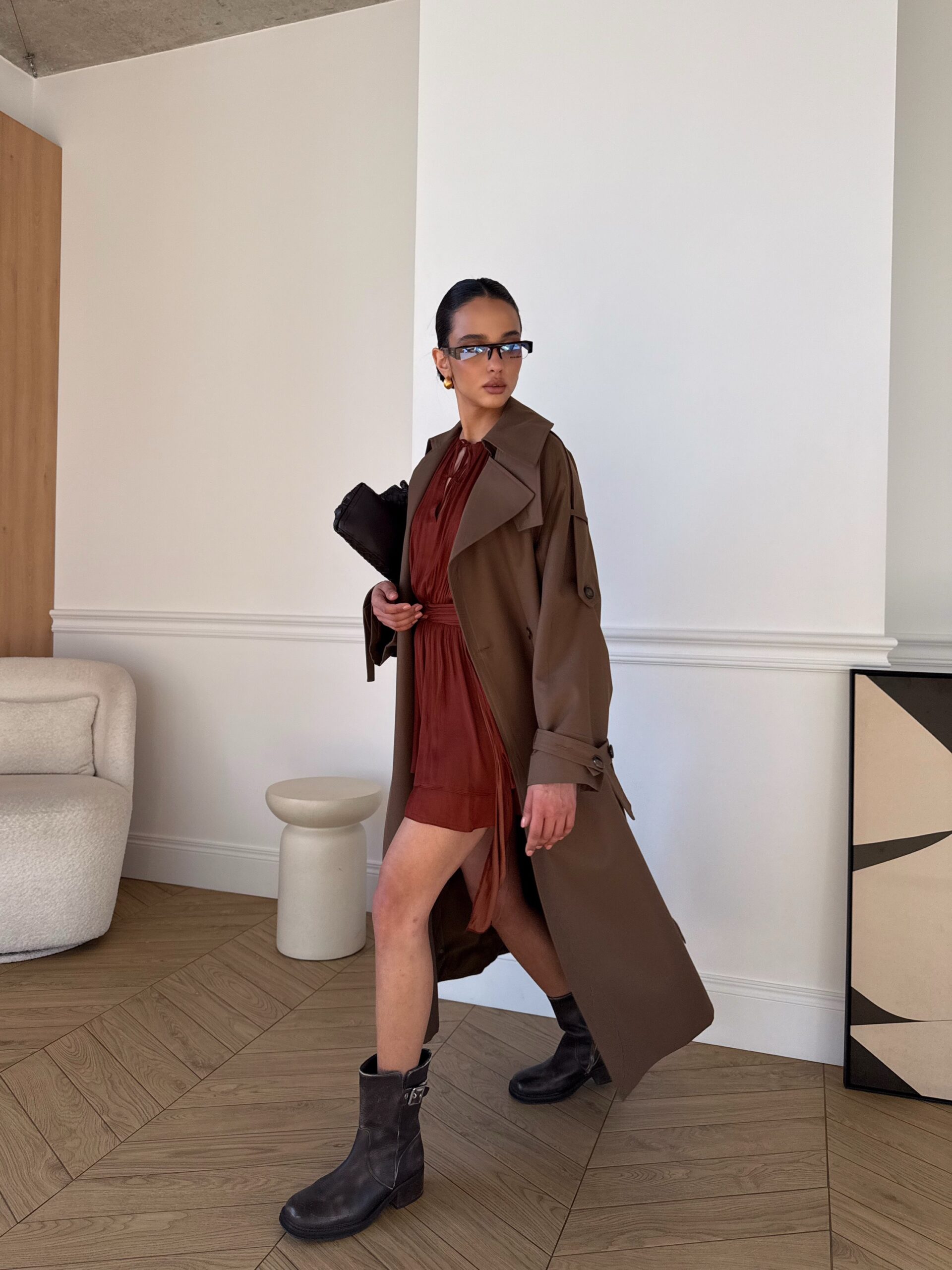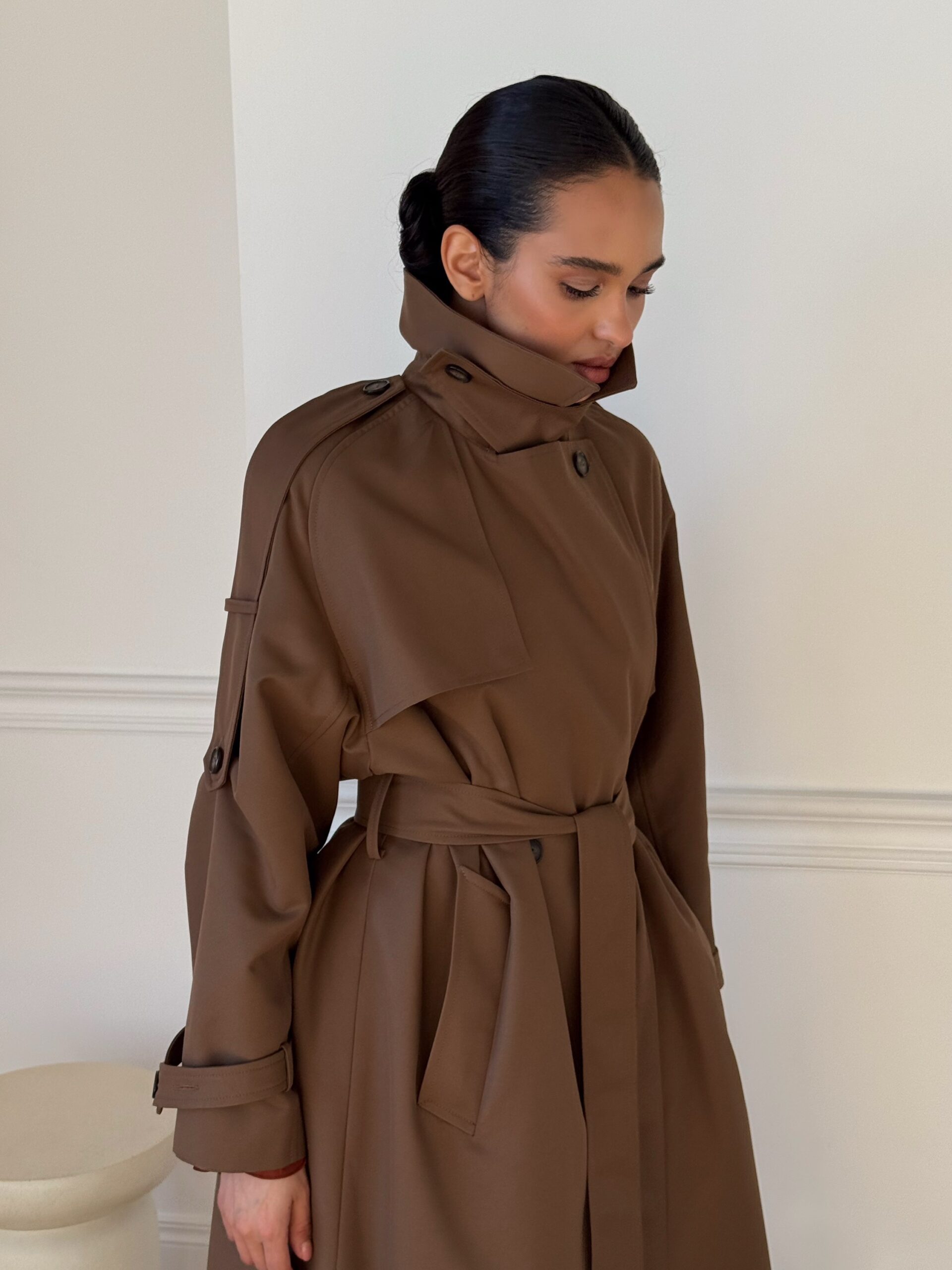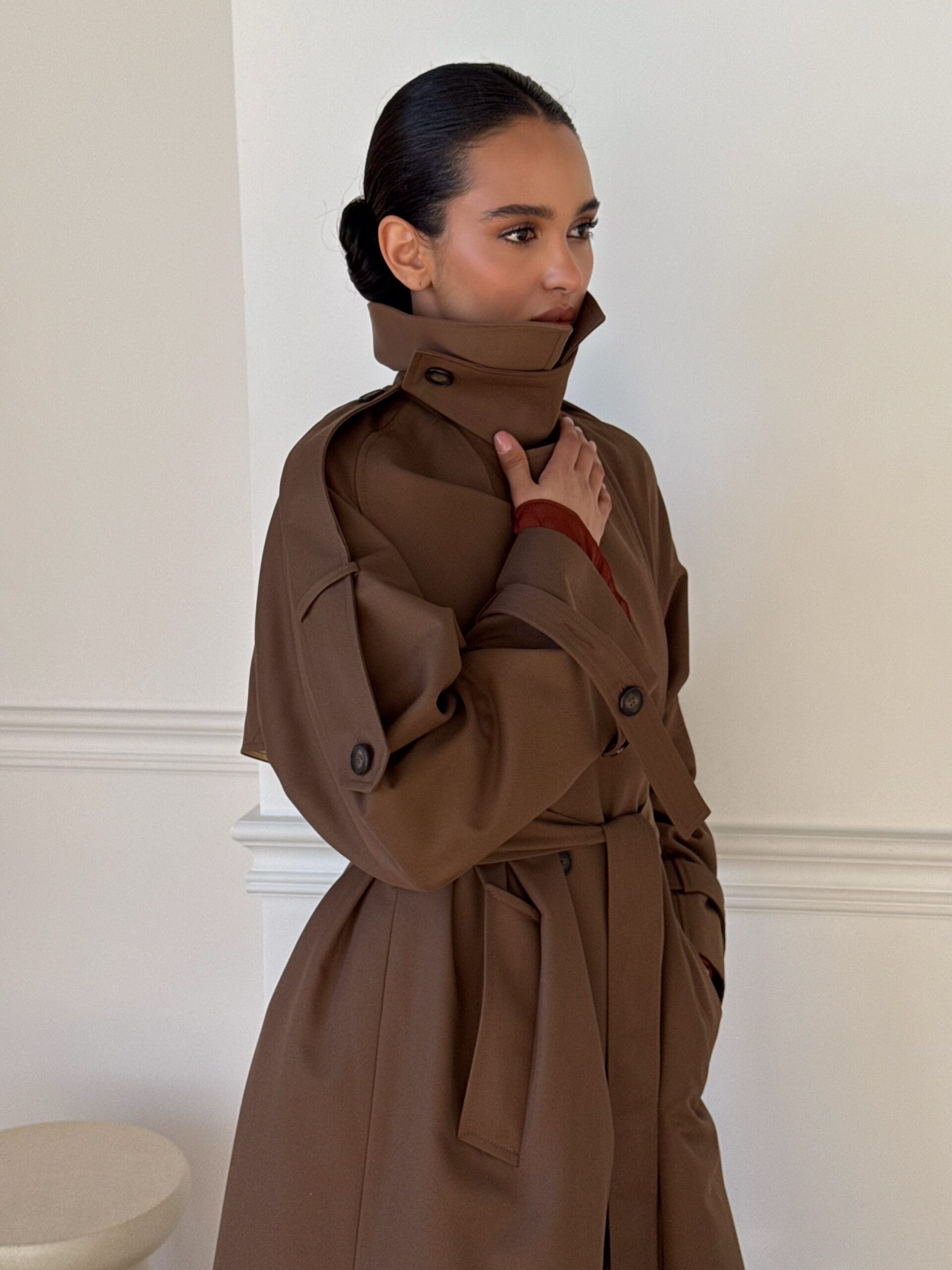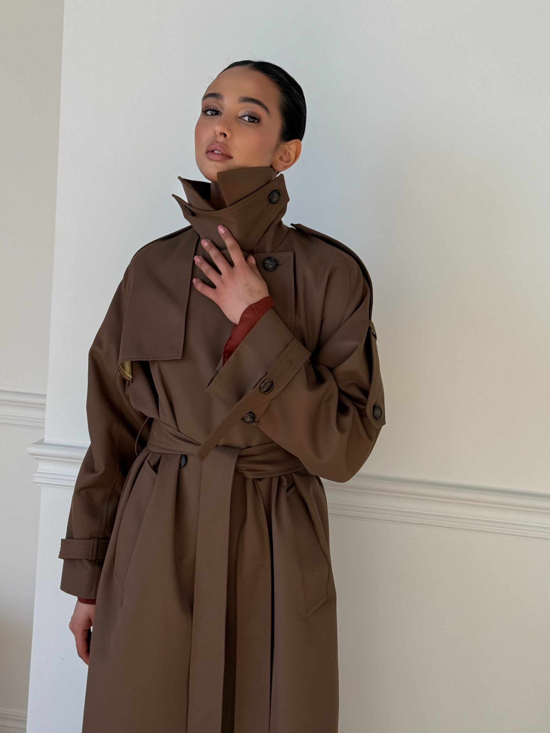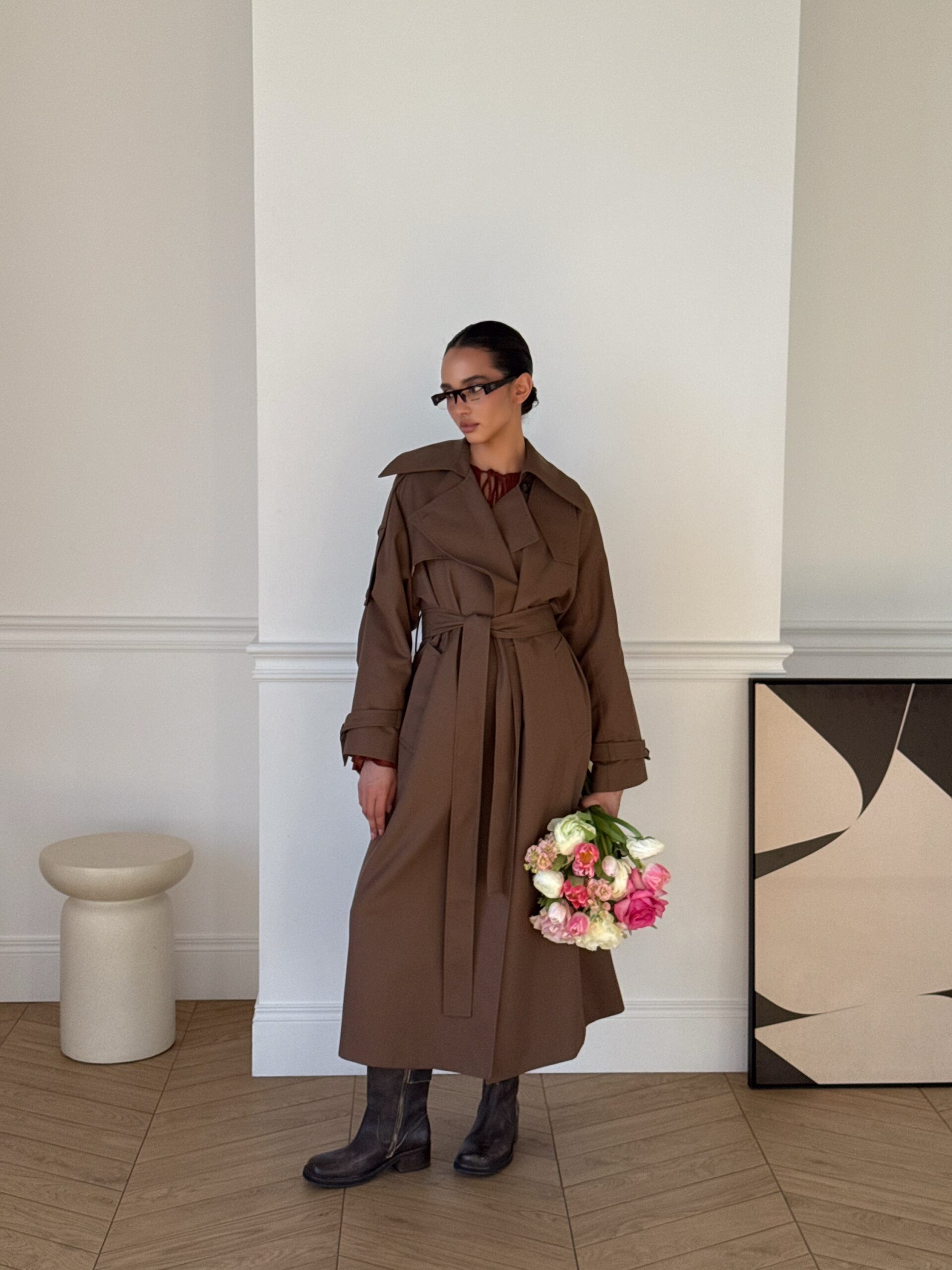 Laisvesnis, modernus kirpimas suteikia elegancijos ir nevaržo judesių. Diržas leidžia reguliuoti siluetą – pabrėžti liemenį arba rinktis laisvesnį, „oversize“ įvaizdį. Aukšta apykaklė ne tik saugo nuo vėjo, bet ir tampa išskirtiniu stiliaus akcentu.