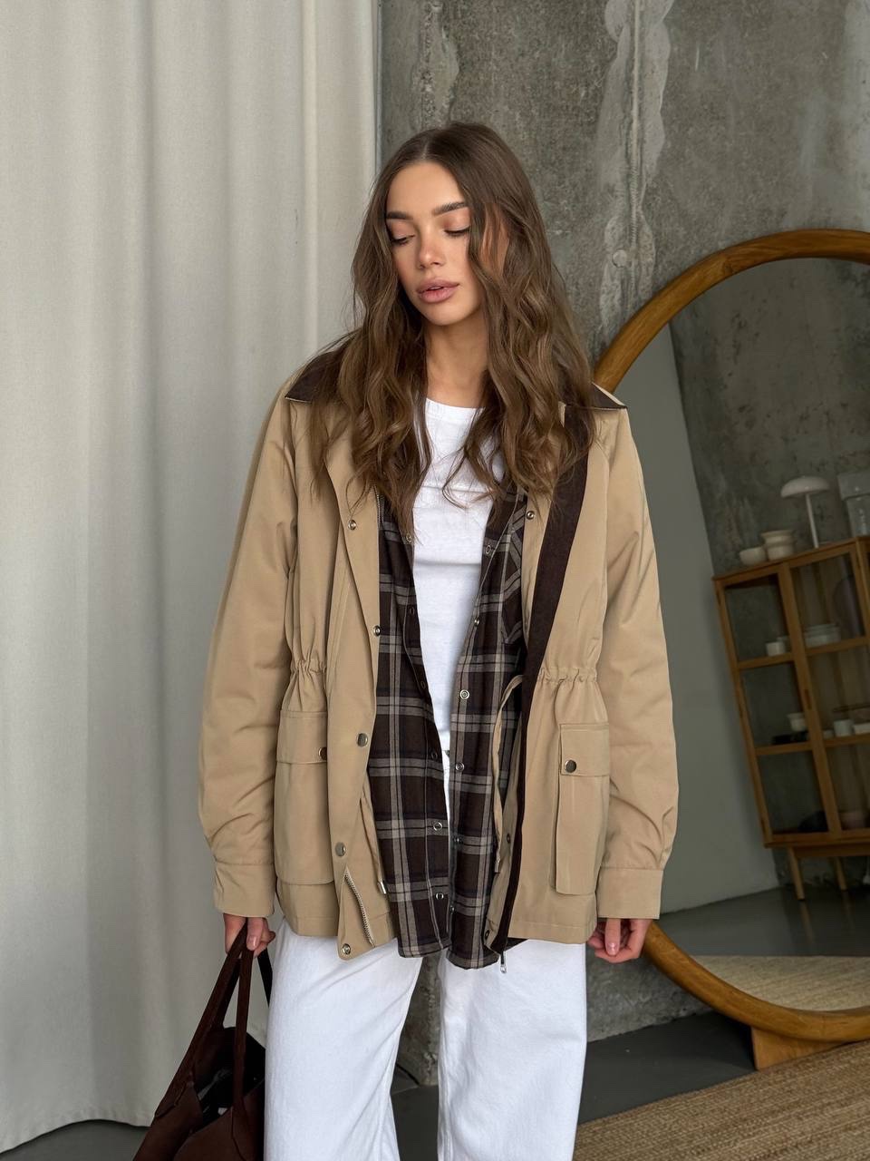 - Reguliuojamas juosmuo. Viduje esanti raištelių sistema leidžia pritaikyti striukę pagal figūrą – galite išryškinti liemenį arba pasirinkti laisvesnį, oversized stiliaus kritimą.