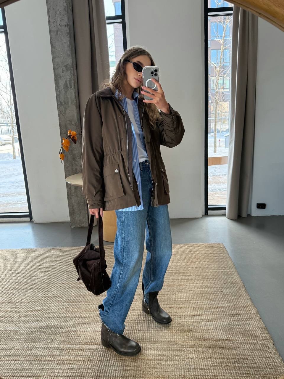Šokolado atspalvis leidžia derinti tiek prie neutralių, tiek prie ryškių spalvų – galite pasirinkti vienspalvį įvaizdį su rudais ir smėlio tonais arba suteikti akcentą ryškiu šaliku ar rankine.