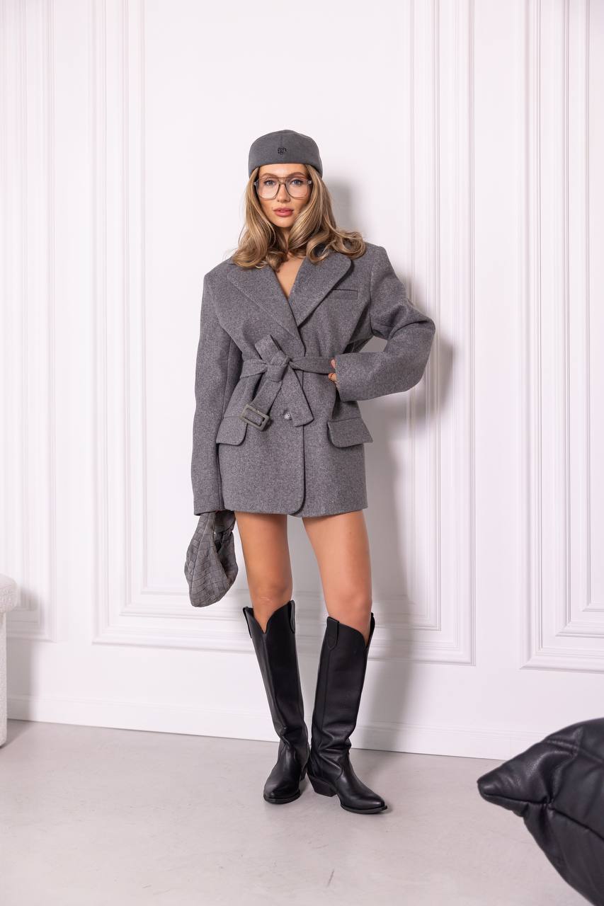 Pilka spalva yra viena universaliausių ir populiariausių, nes ją lengva priderinti prie kitų tonų. Ji puikiai dera tiek su juoda, tiek su balta, pasteliniais ar net ryškiais akcentais. Švarką galima derinti prie klasikinių kelnių, siaurų džinsų, odinių kelnių ar net suknelių. Avint aukštakulnius, švarkas taps elegantišku pasirinkimu vakarui, o su ilgaauliais batais sukurs modernų miesto įvaizdį.
